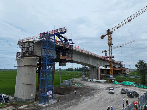 人民网哈尔滨7月27日电(尚城)7月26日,哈伊高铁哈尔滨至铁力段庆安安邦河特大桥施工现场,随着最后一方混凝土完成浇筑,哈伊高铁哈尔滨至铁力段首个特大桥悬浇连续梁完成合龙,标志着我国在建最北端高铁桥梁建设进入新阶段。