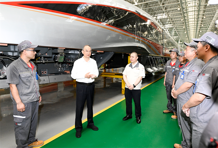 7月29日,中央宣讲团成员、省委书记黄强到中车长客宣讲党的二十届三中全会精神并调研,与车间一线职工亲切交流。张野摄