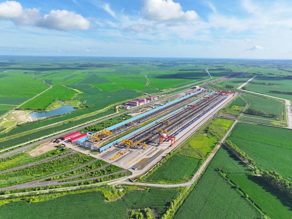 今年5月,佳木斯至同江铁路扩能改造工程正式开工,将扩大同江北站集装箱作业区和换装能力,进一步提升同江铁路口岸及后方通道能力,更好地发挥中欧班列战略通道作用、推动中欧班列高质量发展。(尚城 图片由中国铁路哈尔滨局集团有限公司提供)