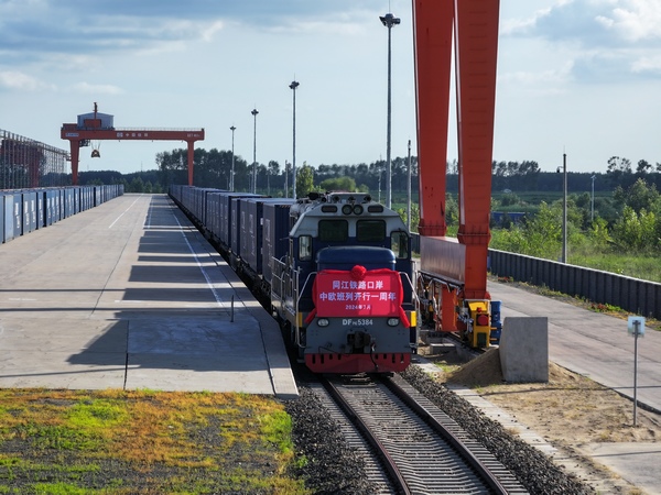 同江铁路口岸位于黑龙江省东北部,属于国家一类口岸,2022年11月开通运营,2023年7月开行首趟去程中欧班列,同年10月实现班列双向贯通。同江铁路口岸是我国中欧班列“东通道”的重要口岸之一,经该口岸通行的班列主要以长沙、沈阳、长春、哈尔滨、上海等地市及周边地区货源为主,货物运输通达俄罗斯等欧洲国家,货品涵盖汽车配件等品类,目前中欧班列月通行量较口岸开行初期增幅接近170%,呈现量质齐升的良好态势。