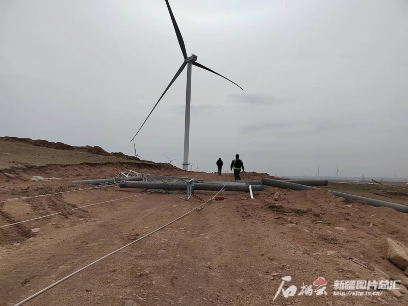 塔城地区某风电场遭受暴雪灾害,今年4月份,平安财险新疆分公司派人到现场查勘定损。目前,理赔工作正在有序推进中。平安财险新疆分公司供图
