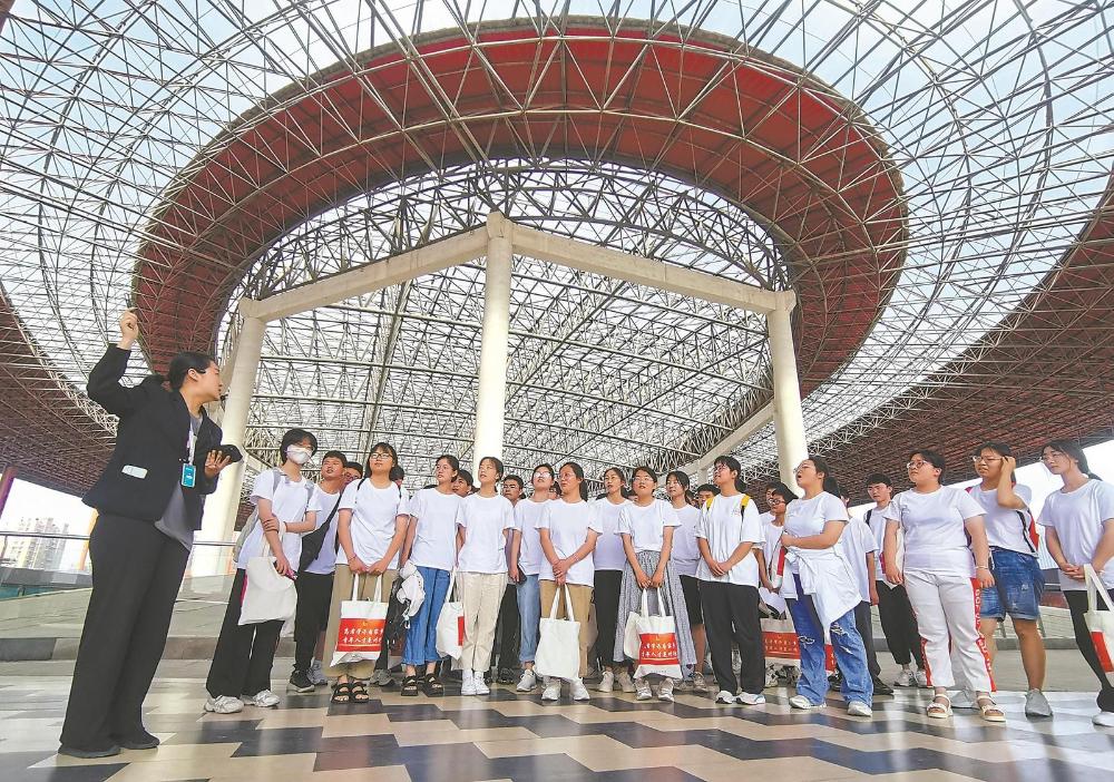 “高考学子看家乡 青年人才安徽行”活动中,青年人才和高考学子代表参观亳州中药材专业市场。
